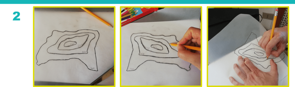 A questo punto prendete un foglio di carta trasparente e ricalcate le curve di livello, avendo cura di scrivere di fianco il valore corrispondente in metri. Girate il foglio e ricalcate a matita le linee tracciate. In questo modo potrete usare i fogli trasparenti come se fossero carta carbone o carta copiativa. Sovrapponete la carta trasparente alla lastra di polistirolo e imprimete ogni isoipsa ricalcando la traccia. Fatelo per ciascuna curva in porzioni diverse del polistirolo, in modo da creare figure piene e indipendenti tra di loro. Nell’esempio di prima, tracciando la 220 m avrete isolato un’area dove la quota è maggiore di 220 m, in un altro punto della lastra traccerete la 230 m e così via.