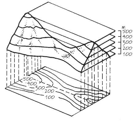 Le curve di livello o isoipse sono quelle linee che uniscono i punti che hanno la stessa quota (distanza verticale) rispetto al livello del mare. È come tagliare a fette (orizzontali) una montagna e proiettare su una carta i contorni delle figure ottenute.