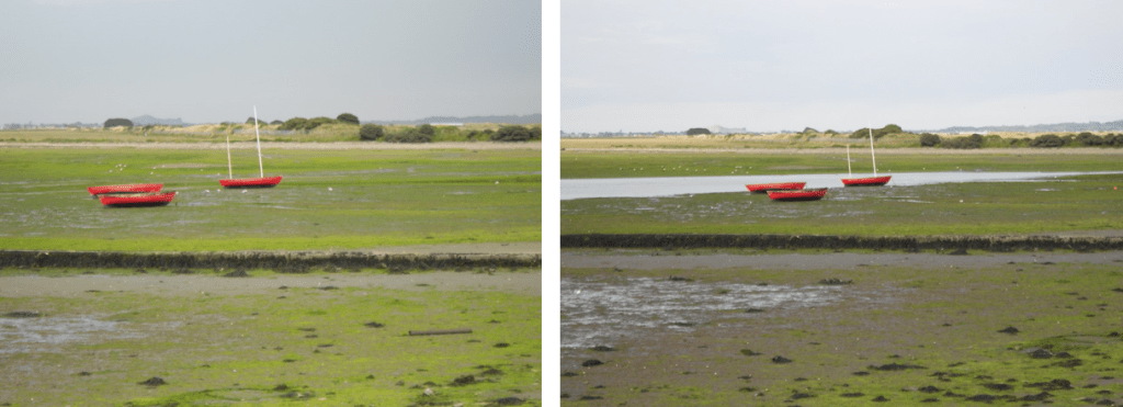 La marea stava risalendo e l’acqua si avvicinava chiaramente alle barche che quindi non erano state ormeggiate fuori dall’acqua, ma in condizioni di alta marea. L’oscillazione di marea della zona sembra essere molto ampia sia nello spazio che nel tempo. Nel corso delle due ore di escursione sull’isola, la marea era in fase di transizione verso il suo valore massimo della giornata. A giudicare dal terreno fangoso l’acqua sarebbe salita ancora fino a dare sostegno alle barchette rosse facendole galleggiare.