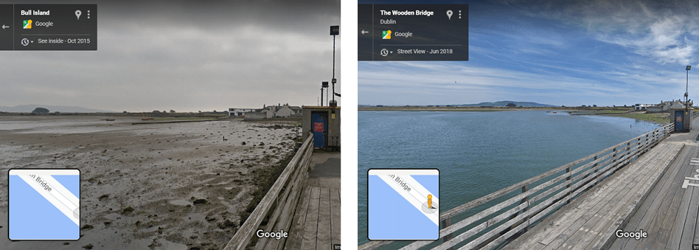 Grazie a qualche ricerca su Google Street View, ho trovato questi scatti che mostrano la situazione ai suoi estremi opposti.